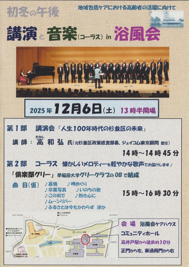 ■11月・12月の活動ご報告 ・清掃&防犯パトロール ・防火防犯・歳末パトロール ■1月・2月の活動ご案内 ・清掃&防犯パトロール ・防災訓練及び節分祭 ■サギに注意 ■古紙回収にご協力お願い ■防災フォーラム2025/防災訓練及び節分祭 ■杉並区・警察署からのお知らせ ■浴風会だより(秋季号=2024年10月発行) |